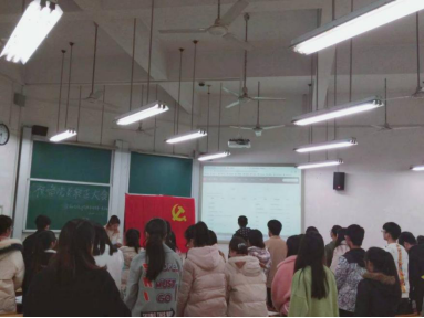 11月27日晚上七点,kaiyun云开登录入口本科生第一党支部在二教102教室召开了预备党员转正大会,大会讨论杜宇阳同志、卢宛君同志等38名同志申请转为正式党员的事宜,出席本次会议的有kaiyun云开登录入口组织员谢树玉、2018级本科生辅导员兼支部书记夏浩、2018级本科生辅导员范玉康、2017级本科生辅导员杨晨以及支部的全体预备党员。大会由李海科同志主持,在清点人数完毕、宣布成员到会情况后,李海科同志宣布大会流程,介绍大会事项,会议正式开始。