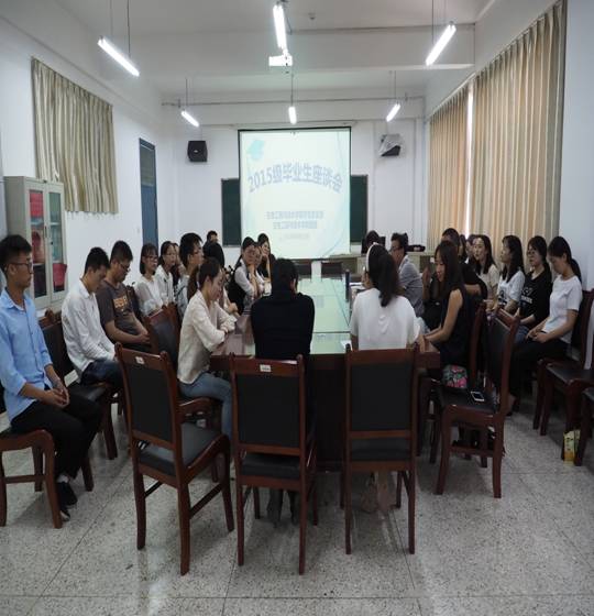 6月19日下午,beat365官网2015级毕业生座谈会在3号实验楼414会议室举行,学院党总支书记马纲,学院副书记、副院长赵铁成、2015级毕业班班主任代表贾贞,辅导员及各班毕业生代表50余人参加了座谈会,会议由赵铁成副书记主持。