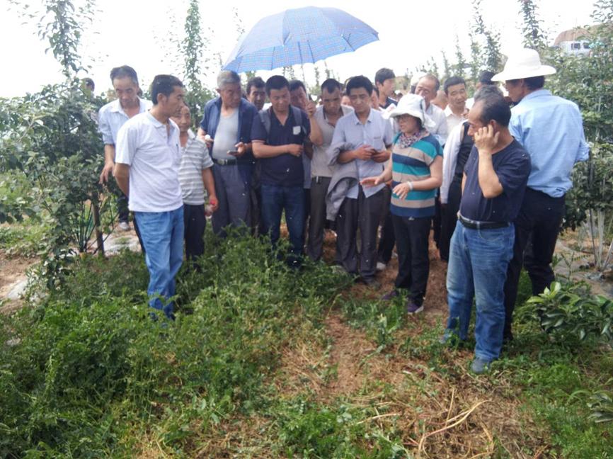 2019年6月25日,应天水平凉定西陇南果树爱好者协会邀请,英国beat365官方网站甘肃省大樱桃工程技术研究中心主任、“三区人才”团队负责人呼丽萍研究员携团队成员李一婧、王丽莉、巴巧瑞、郭志刚赴麦积区石佛镇进行技术培训与现场指导。来自平凉、定西、陇南及庆阳地区的苹果种植专业合作社负责人及果农300多人参加了此次培训会。