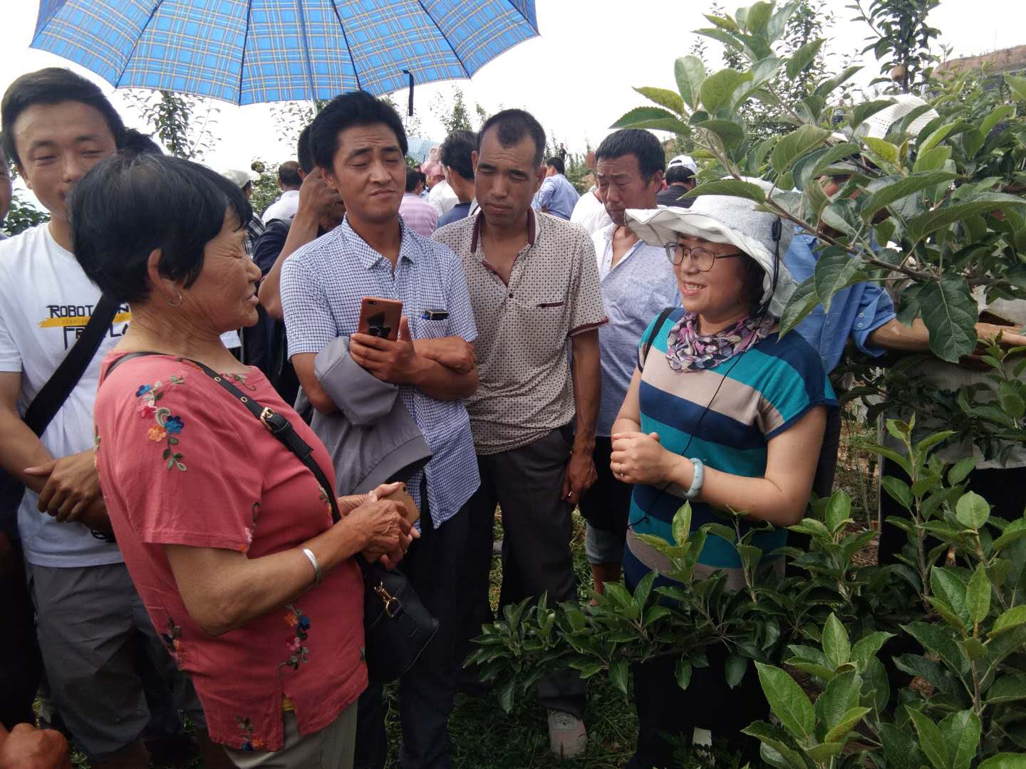 下午,呼丽萍研究员携团队成员对参加培训的果农在苹果栽培基地进行了实地培训指导,对代表性基地的栽培管理及病虫害防治关键技术进行了现场讲解与培训,果农们学习气氛热烈、热情高涨,分别就病虫害防治及栽培管理问题进行咨询。培训结束后果农们请呼丽萍研究员签名并合影留念。