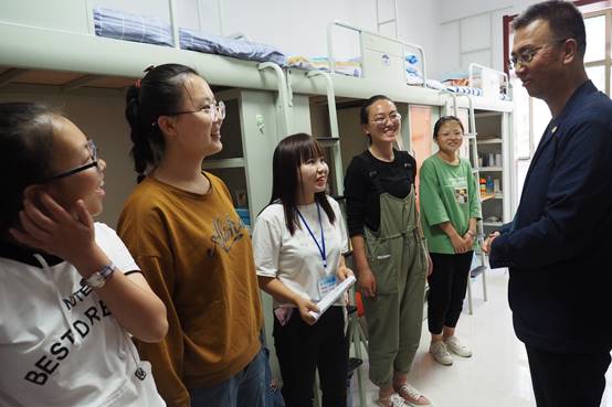 为了解新生入学住宿生活情况,及时解决同学们在生活中遇到的困难,引导新生尽快适应新生活、新环境。2019年9月5日,beat365官网党总支书记马纲、副书记赵铁成、副院长王弋博及辅导员,到宿舍看望2019级新生。