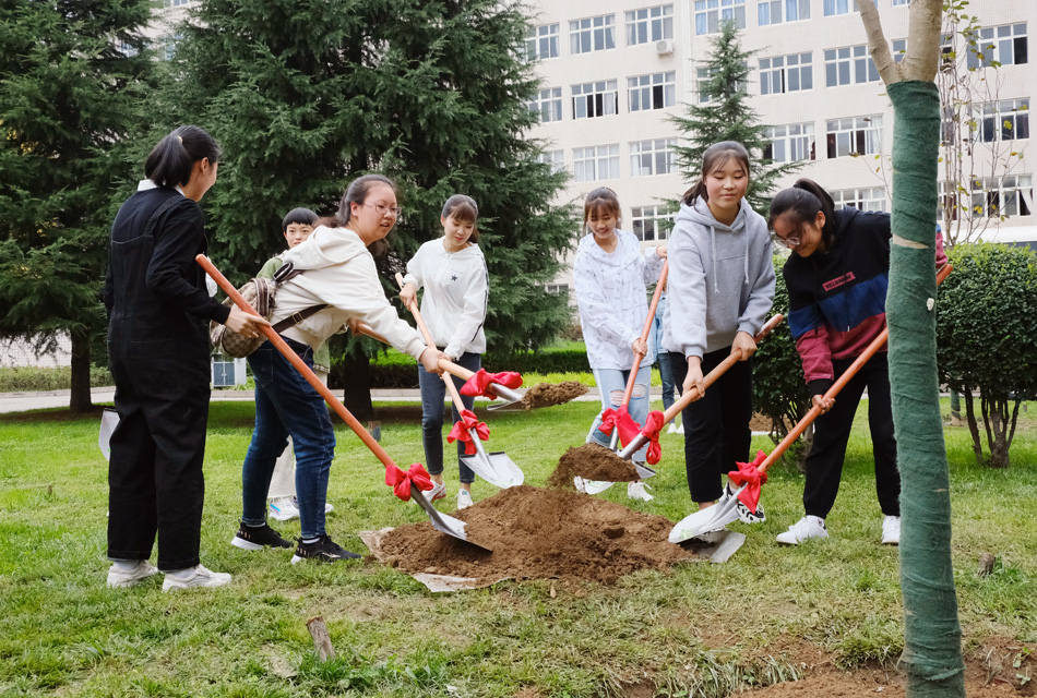 活动中,北京林业大学为学校捐赠一批红花玉兰树种。双方校领导共同为红花玉兰树培土。