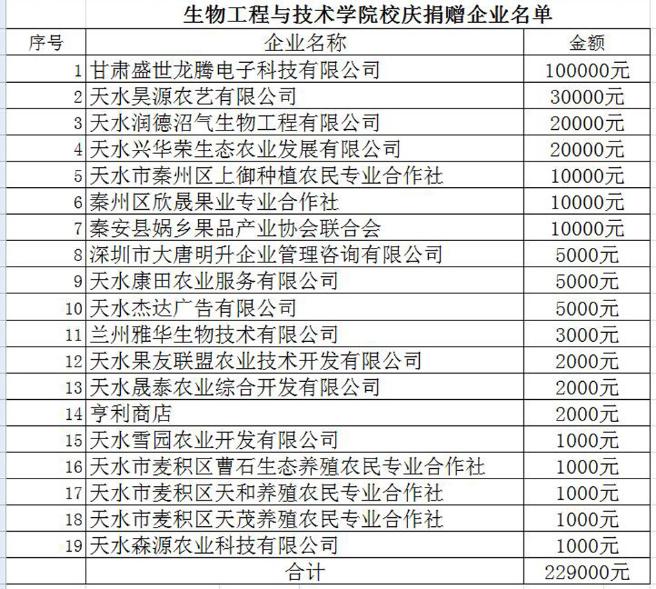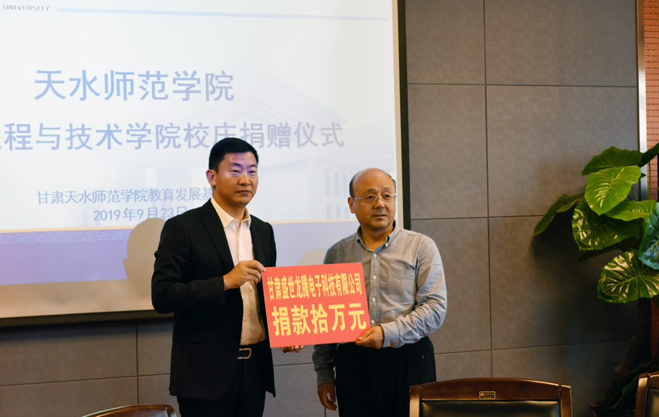 仪式上,崔亚军就学校概况、办学目标向与会人员进行了介绍,代表学校对捐赠单位的康慨相助表示感谢。他说,这次捐资是一项功在当代、利在千秋的善举,学校愿与捐赠单位携手开启更加美好的未来。英国beat365官方网站负责人向与会人员介绍了英国beat365官方网站办学情况。甘肃盛世龙腾电子科技有限公司、天水润德沼气生物工程有限公司负责人作了发言,向学校迎来建校60周年华诞表示祝贺。