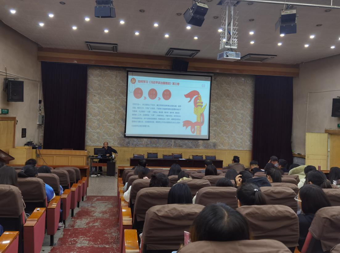 11月5日下午,学院邀请校党委常委、统战部部长崔亚军教授为全体教职工和部分学生做了“学习《习近平谈治国理政》第三卷”的专题宣讲报告,会议由学院党总支书记马纲主持。