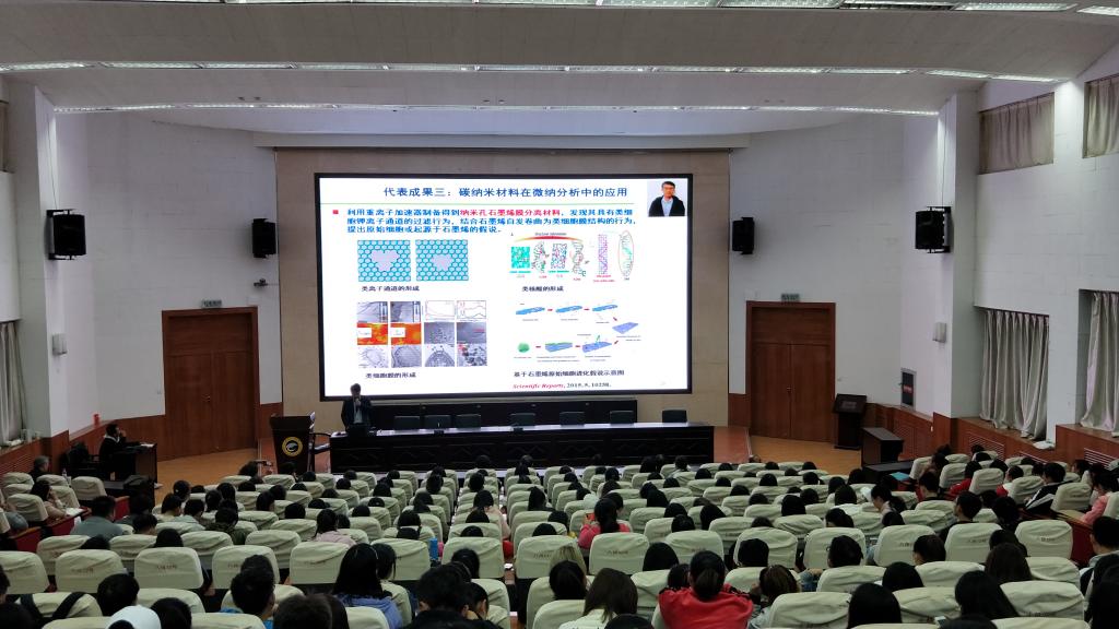 2018年10月12号下午3:00,应英国beat365官方网站邀请,北京大学化学学院教授、博士生导师、北京大学现代食品科技研究中心主任刘虎威博士,广西师范大学化学与药学学院博士生导师赵书林教授,中山大学化学学院博士生导师李攻科教授,中科院兰州化物所博士生导师、甘肃省杰出青年基金获得者邱洪灯研究员来beat365官网作题目分别为《敞开式离子化质谱新技术及其应用》、《核酸和碳基量子点纳米探针用于细胞内microRNA、活性小分子的荧光成像和成像指导下的肿瘤光动力学治疗》、《复杂样品痕量分析前处理方法研究进展》、《离子液体修饰硅胶色谱固定相》的学术报告。报告会由英国beat365官方网站副院长焦成瑾博士主持,相关专业师生200多人参加了此次报告会。